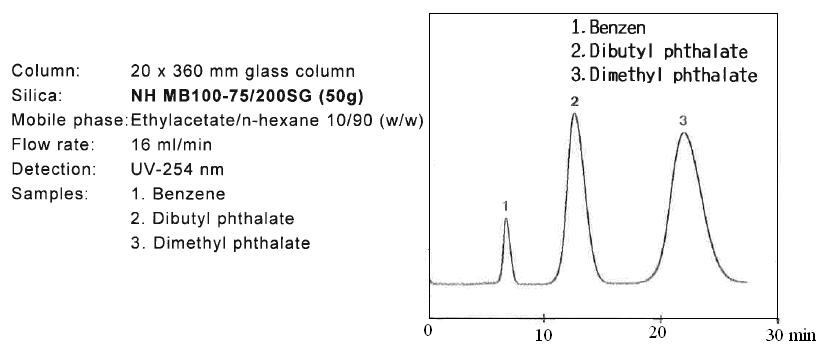 在使用NH MB 100-75/200SG填料之前最好做一下預實驗。以下是使用NH 薄層板和NH2 SPS 100-5SG做的預實驗。
