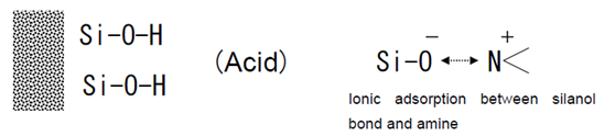 硅膠表面的硅醇基是有極性的,帶負電,酸性,與堿性化合物存在離子間的強吸附作用